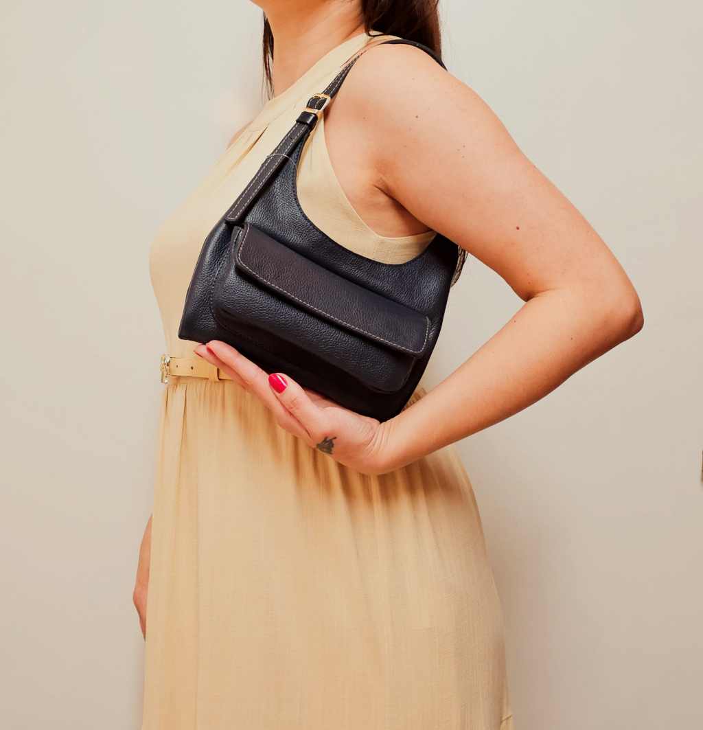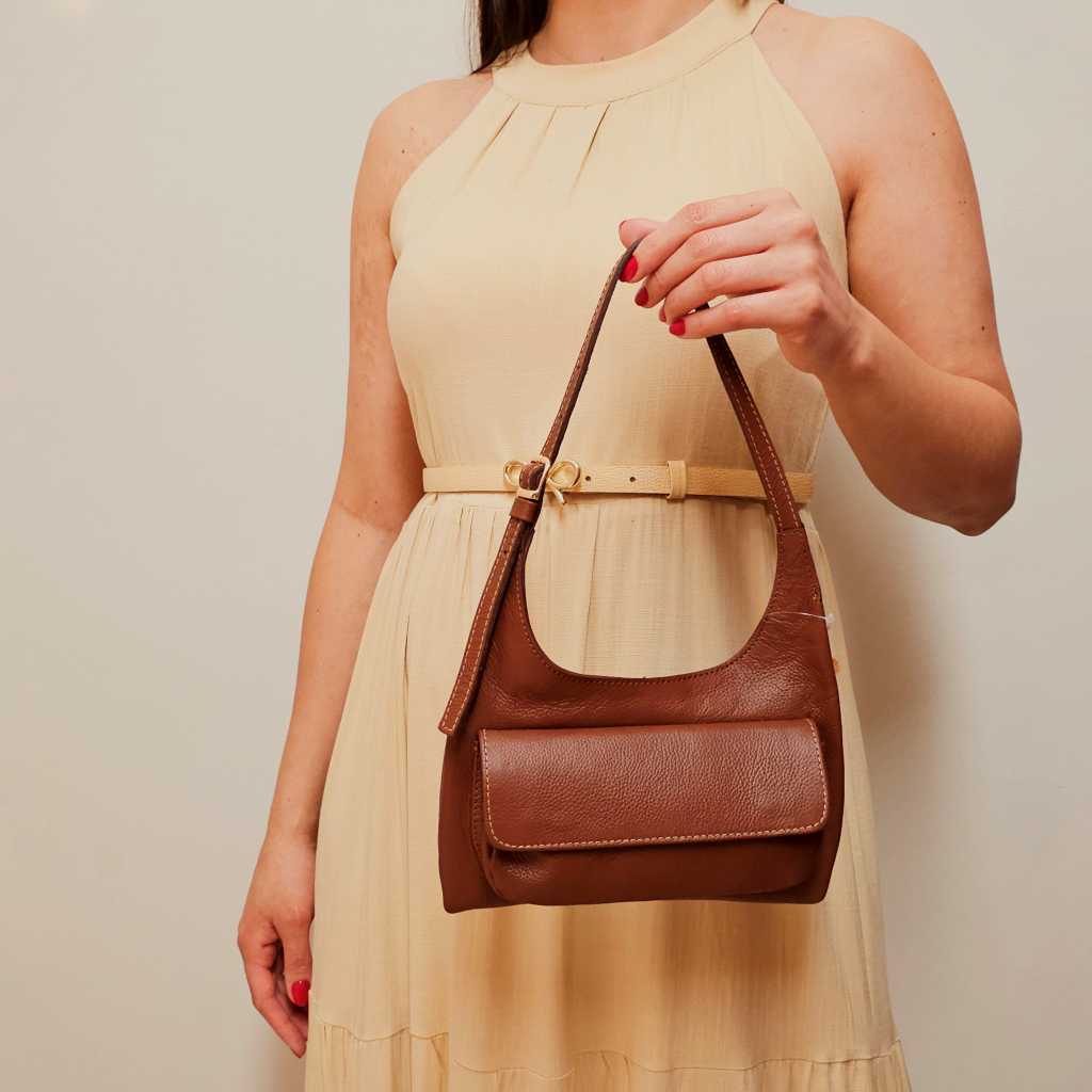 Um toque de elegância e atitude em um único acessório. A Bolsa de Ombro em Couro Legítimo traz um design contemporâneo e compacto, ideal para quem busca praticidade sem abrir mão do estilo.