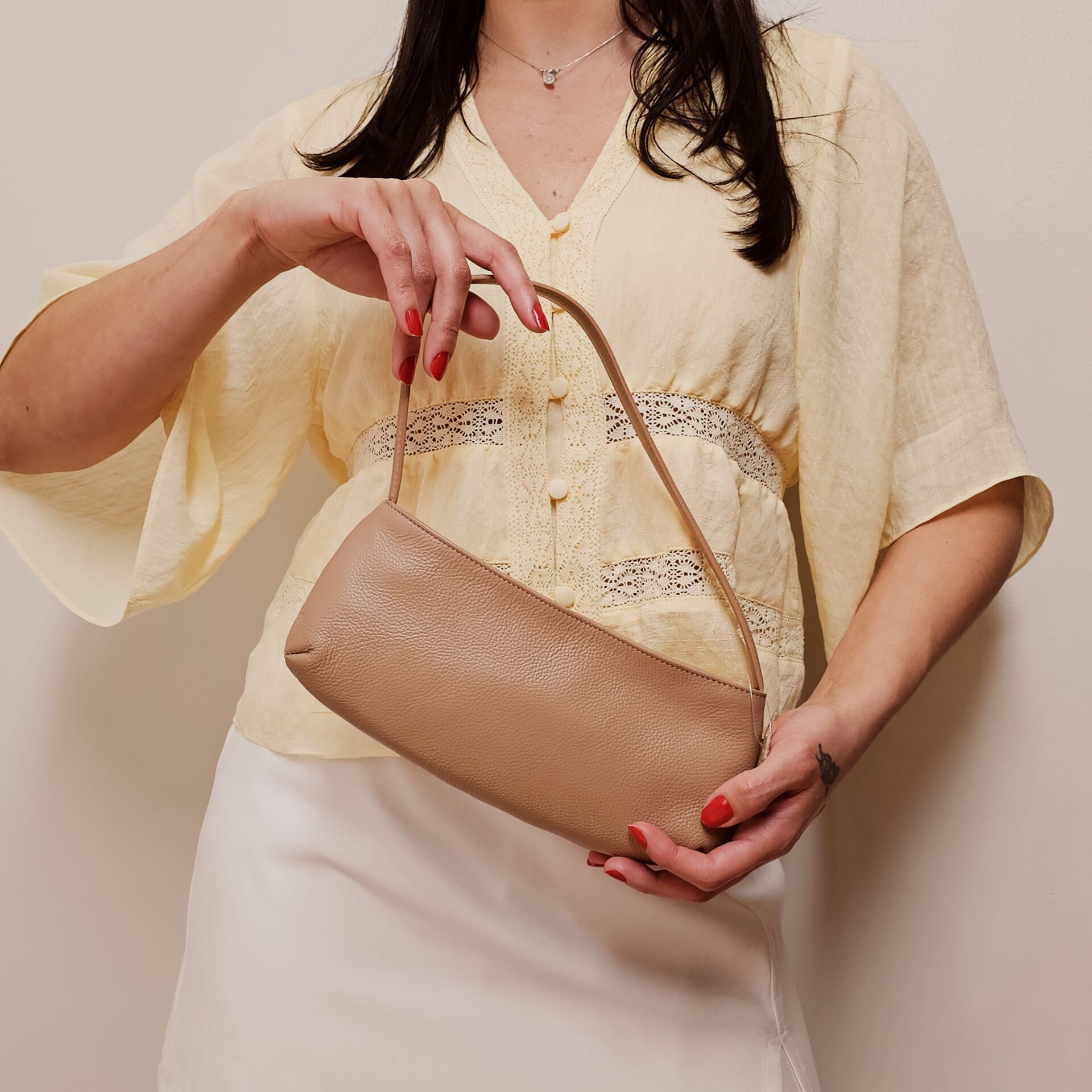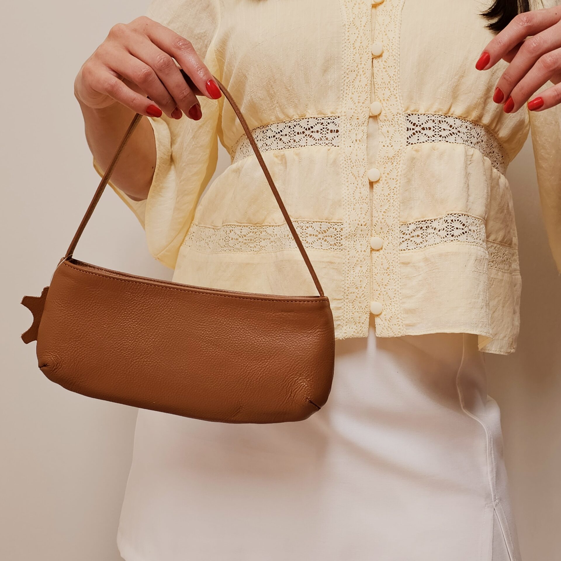 Compacta, versátil e cheia de estilo, esta bolsa tiracolo é confeccionada em couro legítimo de toque macio, ideal para acompanhar produções do dia a dia ou looks noturnos. Seu design minimalista em formato baguete combina sofisticação com praticidade, e o detalhe da etiqueta lateral em couro dá um toque exclusivo à peça.