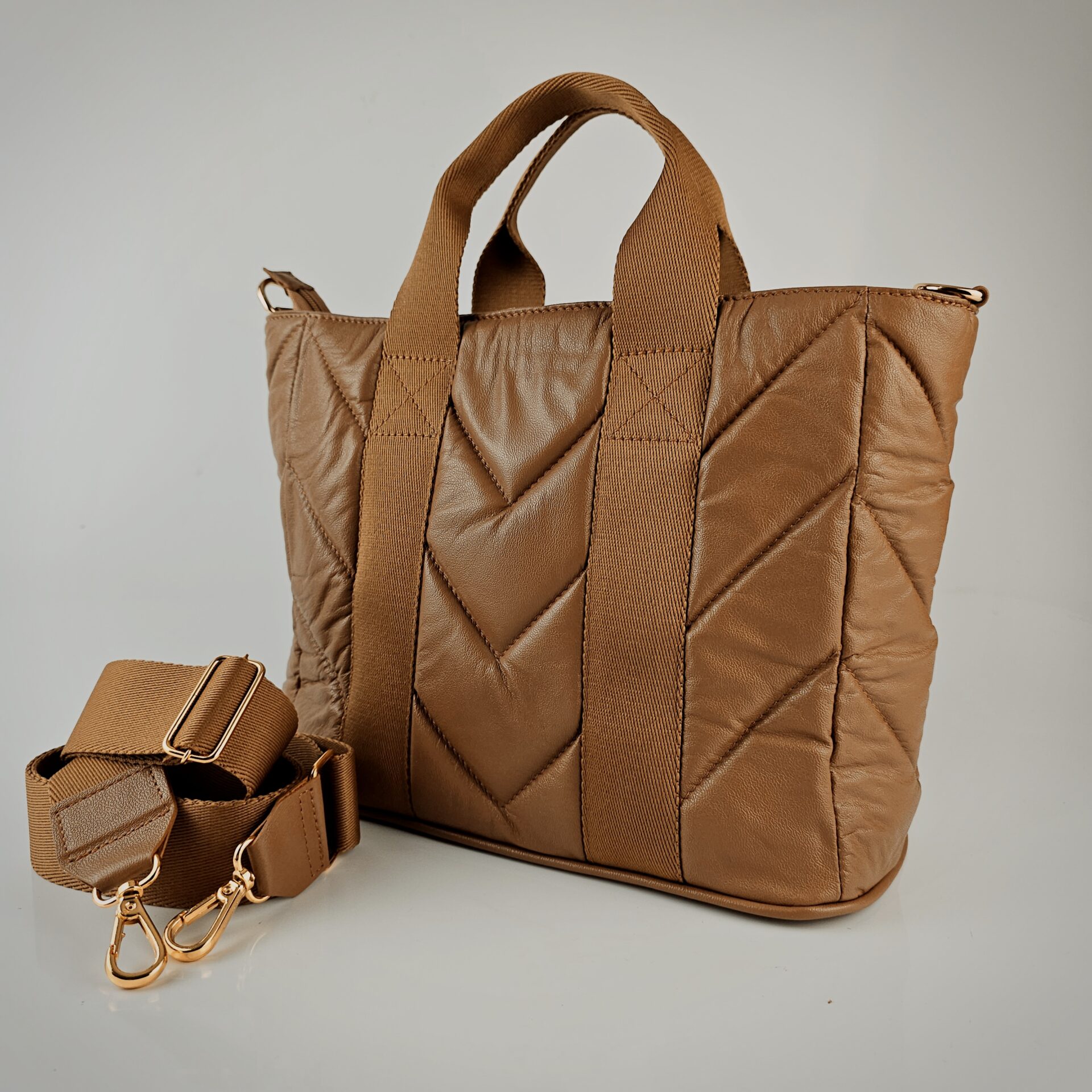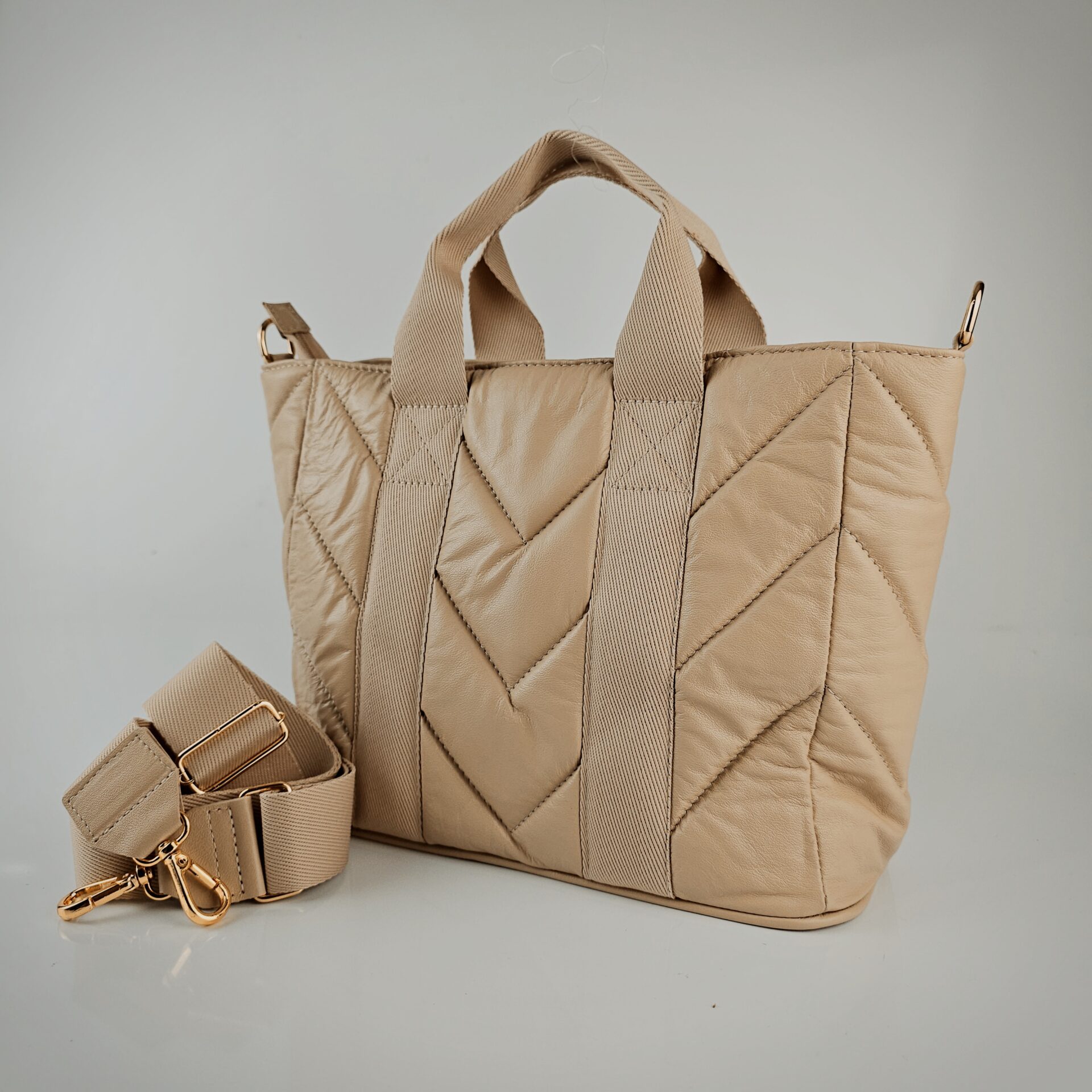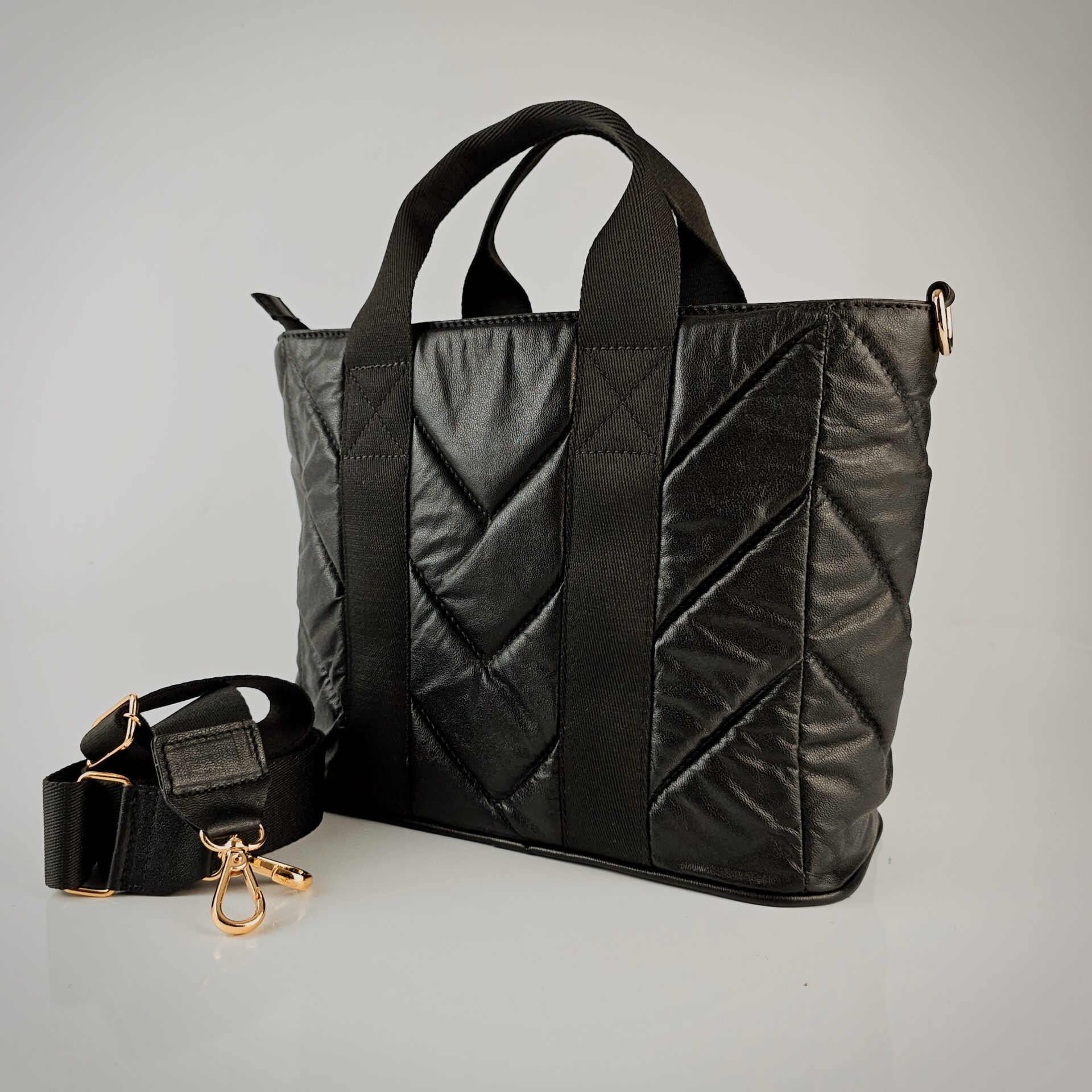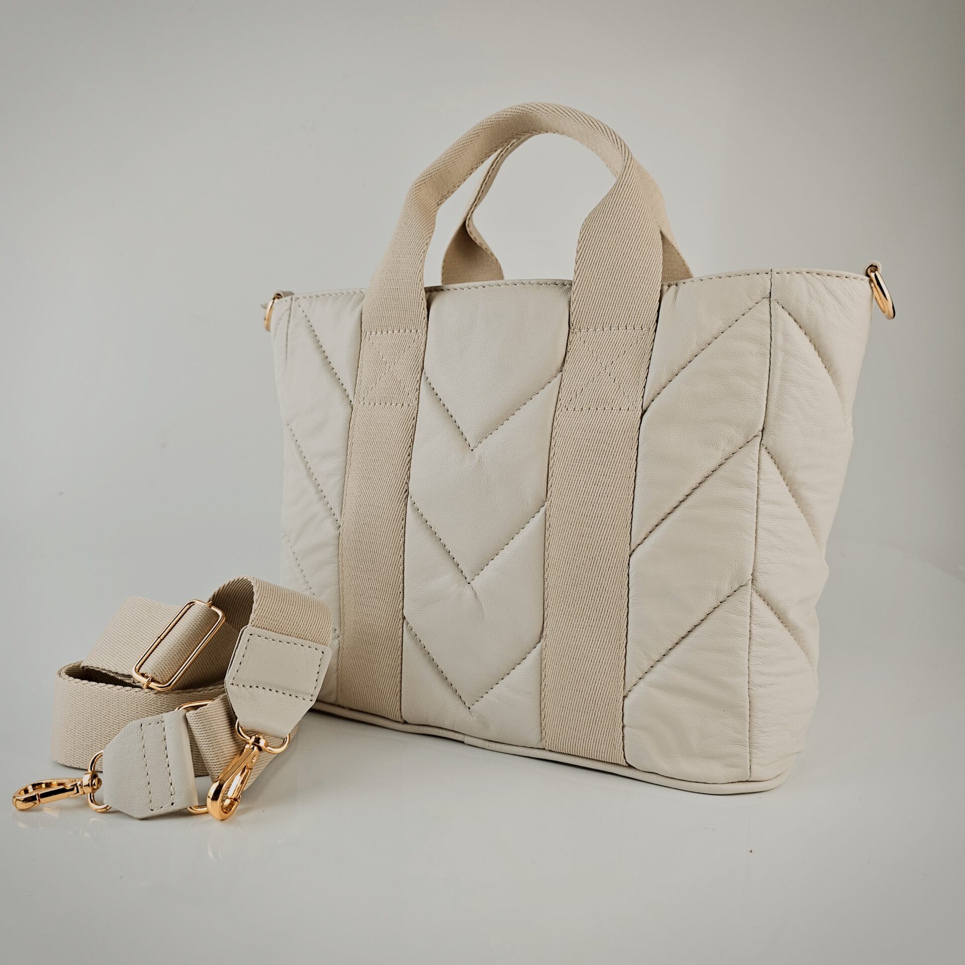 Uma bolsa tote que une elegância moderna e personalidade marcante. Confeccionada em couro legítimo, apresenta matelassê geométrico que valoriza a textura e reforça seu acabamento impecável. O design estruturado garante presença e organização na medida certa.