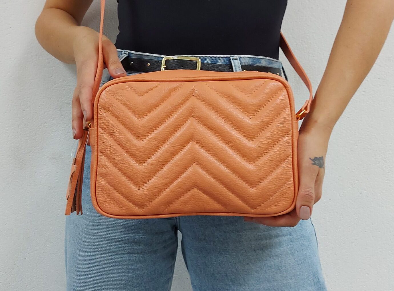 A bolsa conta com charmosas costuras em zig . Versátil e no tamanho ideal para acomodar o necessário! Com ela você consegue compor vários looks dês do básico ao mais sofisticado.