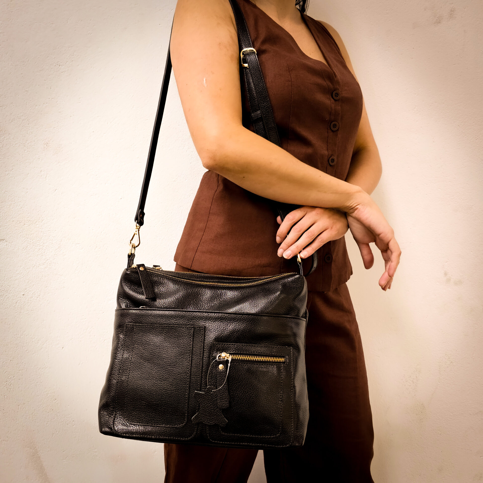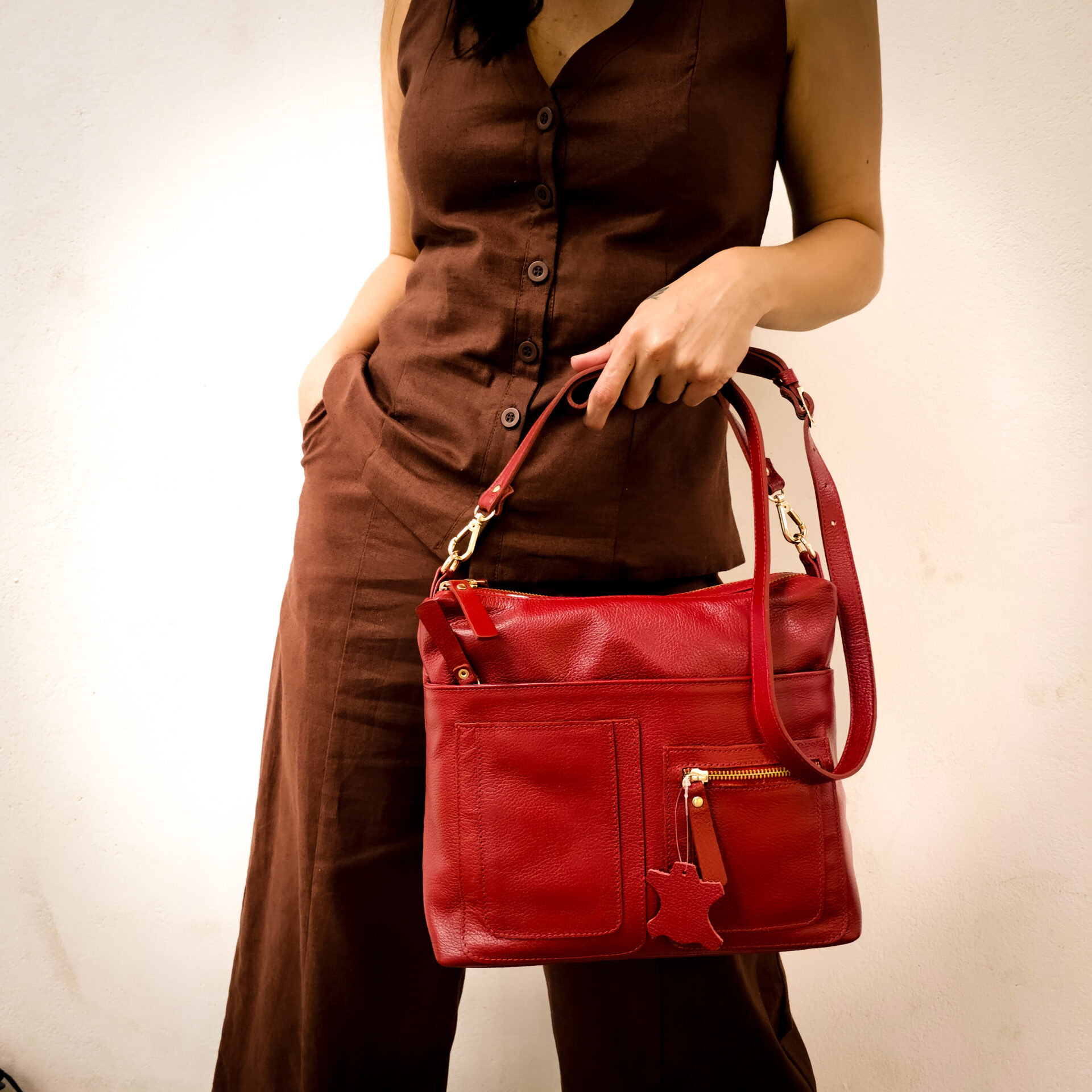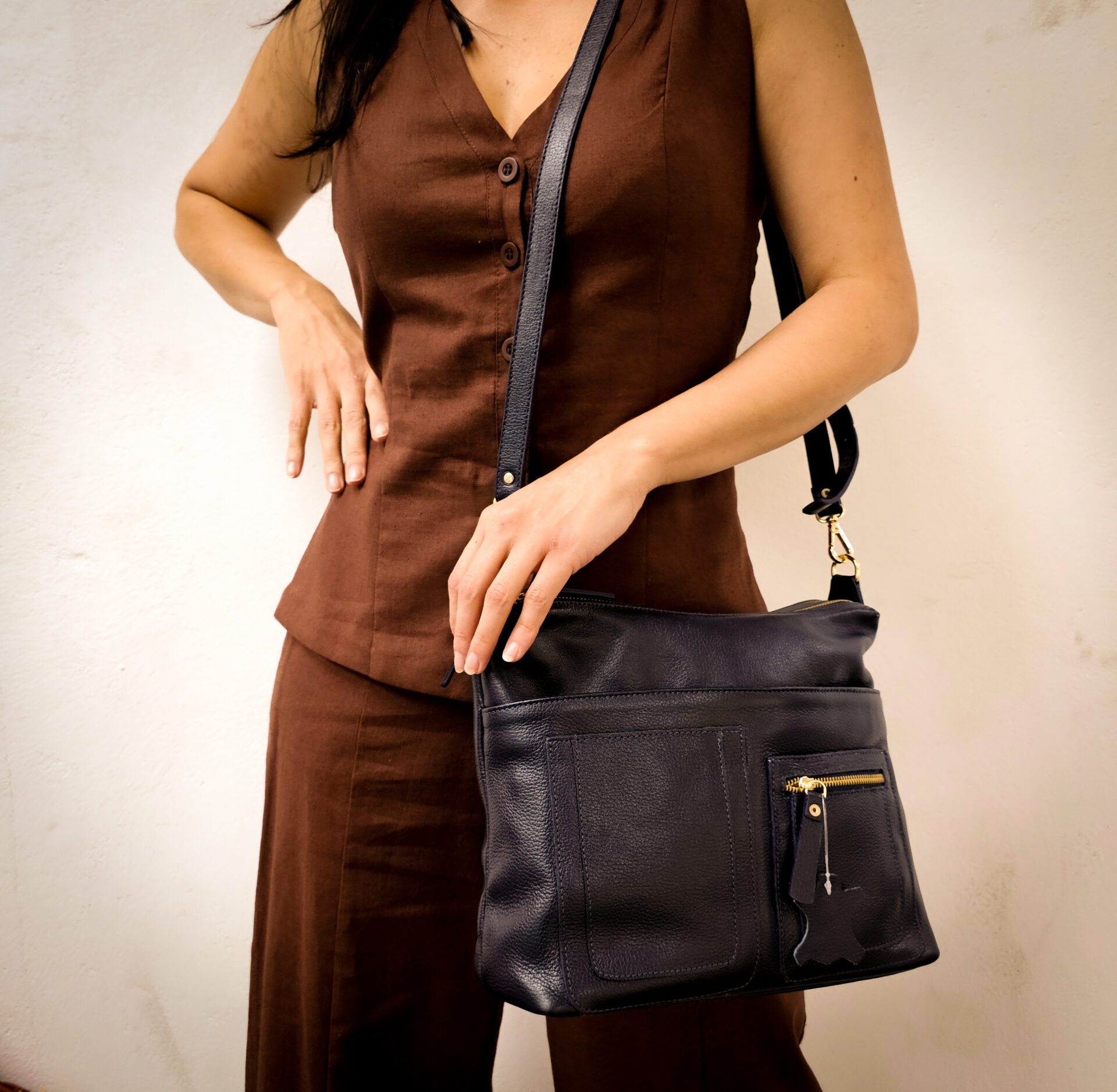Bolsa feminina em couro legítimo com textura natural e toque macio. seu modelo por ser despojado, espaçoso e cheio de bolsos e charme vai ser perfeito para passeios e ate mesmo para trabalho.